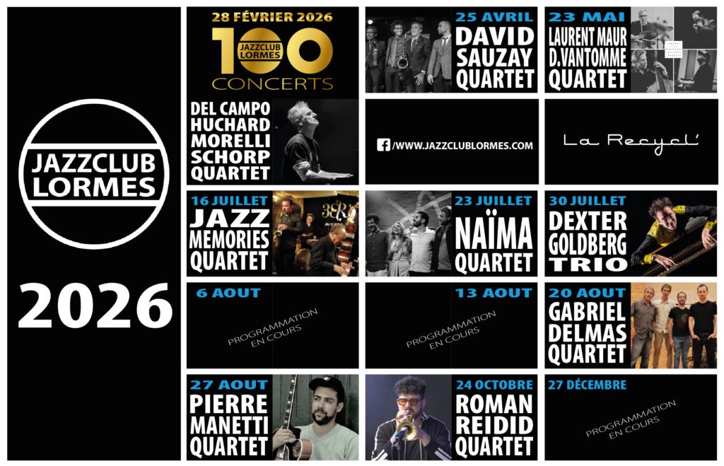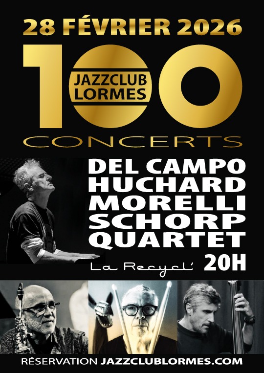 10 ans de Jazz à Lormes et 100 concerts. Nous célébrerons le concert numéro 100, le samedi 28 février 2026 avec un quartet formé pour l’occasion avec des musiciens les plus remarquables et accomplis de la scène jazz française : Sylvain Del Campo, Stéphane Huchard, Nico Morelli, Bruno Schorp.